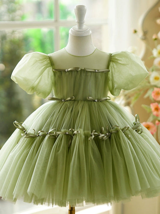 Avocado Green Princess Ball Gown Flower Girl Dress