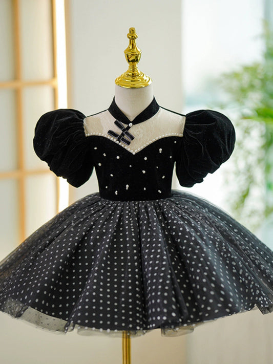 Black Princess Ball Gown Girl Dress with Beaded Tulle
