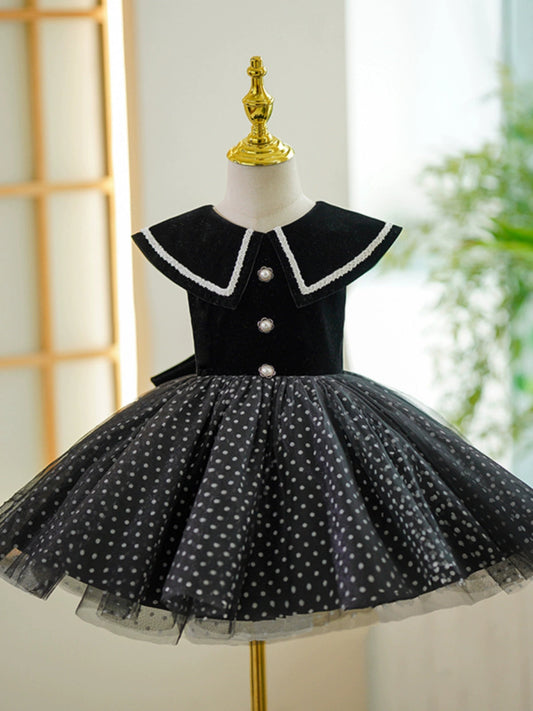 Black Puffy Princess Flower Girl Dress with Sweetheart Neckline