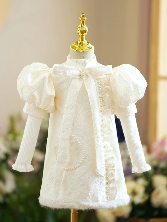Bowknot Fluffy Sequin Long Sleeve Princess Dress for Girls