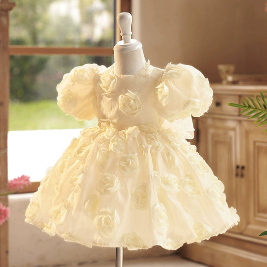 Champagne Organza Ball Gown Flower Girl Dress with Fabric Flowers