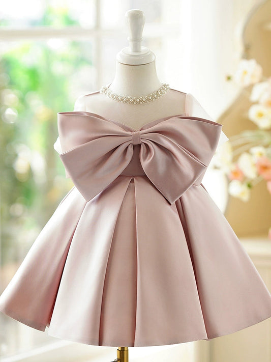 Pink Satin Princess A-Line Flower Girl Dress with Bowknot and Sequins