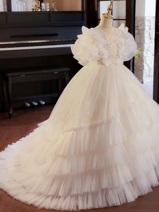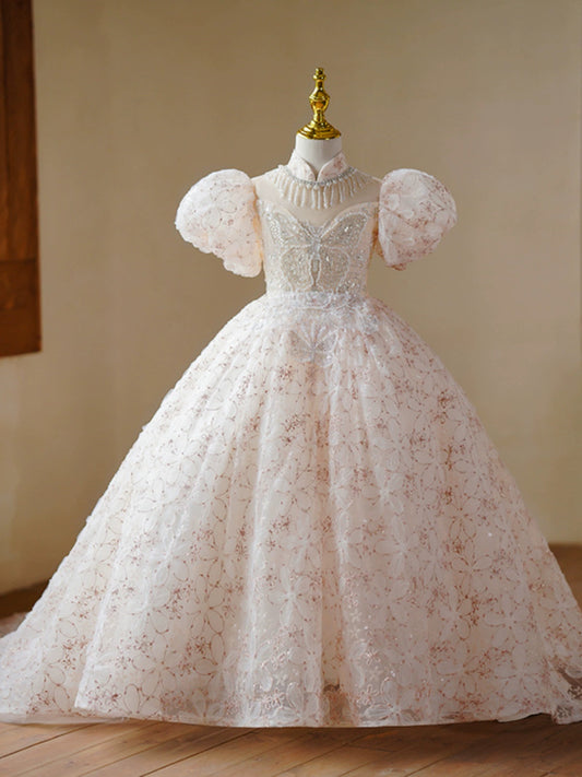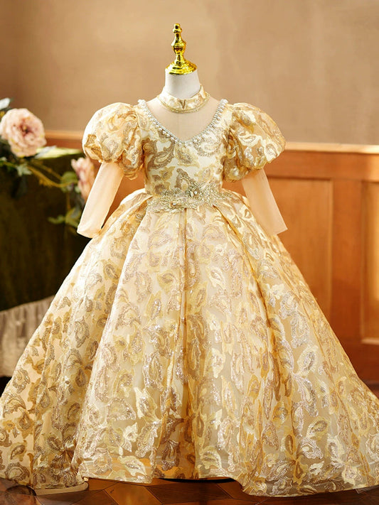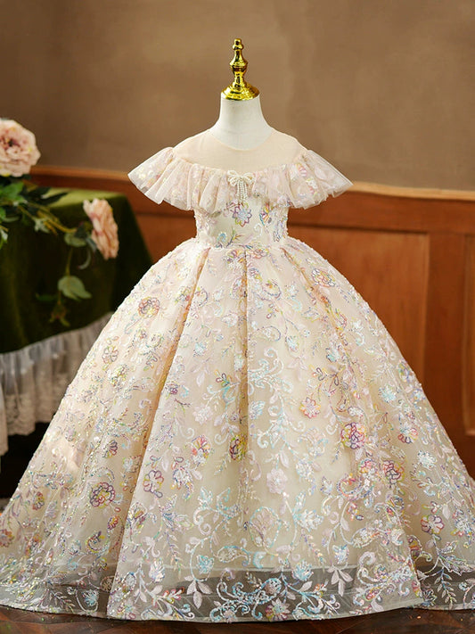 Princess Floor Length Sequined Flower Girl Dress in Champagne