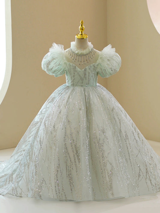 Mint Green Sequin Ball Gown for Girls with Sweetheart Illusion Neckline