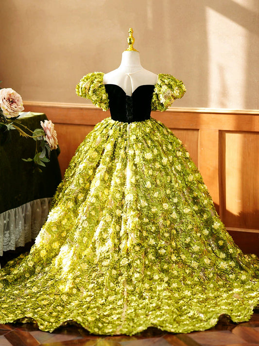 Princess Sweetheart Green Ball Gown Flower Girl Dress