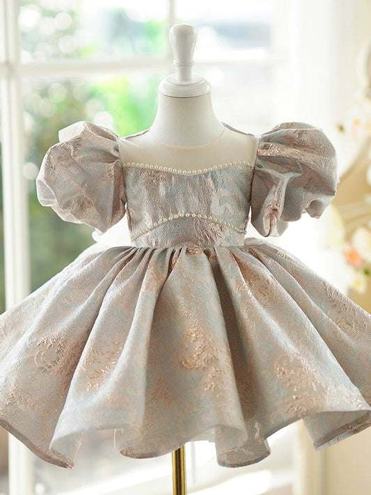 Blue Illusion Neckline Puffy Princess Dress for Girls