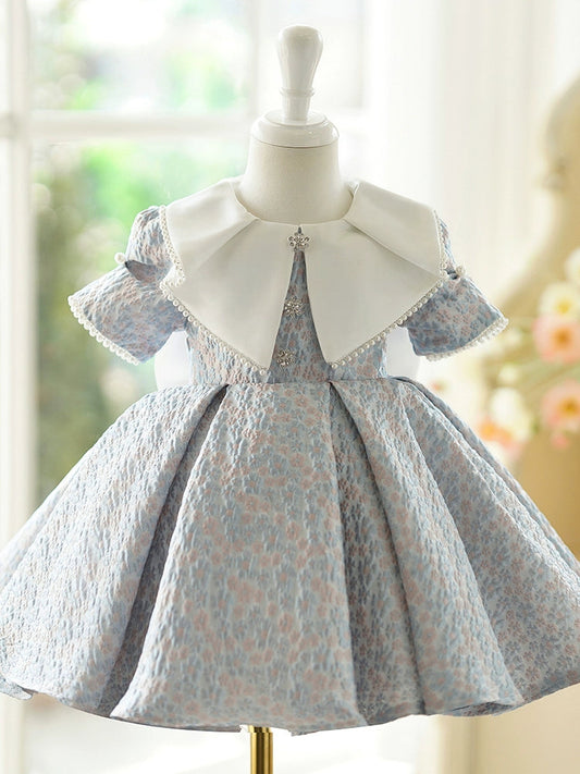 Light Blue Princess Puffy Tulle Dress with Flowers, Sequins and Bowknot