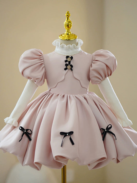 Light Pink Satin Princess Ball Gown Dress for Girls