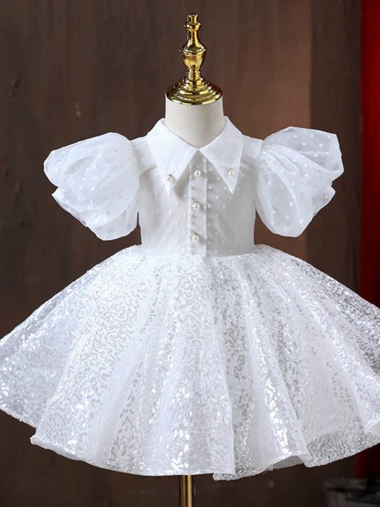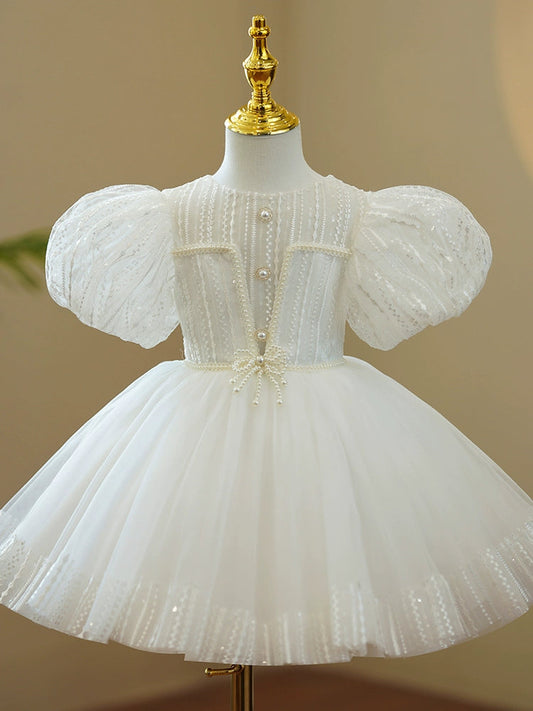 White Puffy Christening Princess Dress for Girls