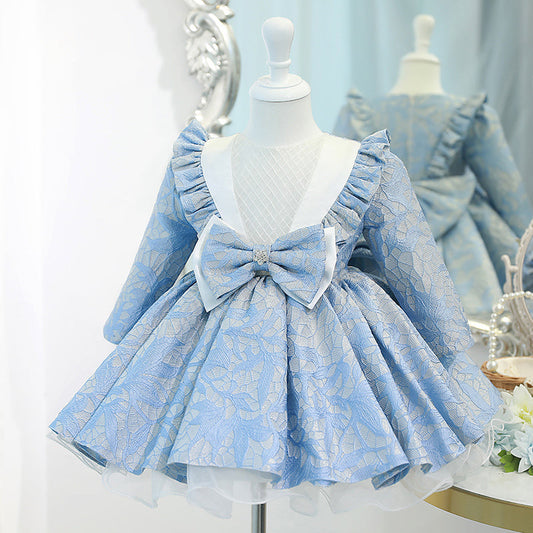 Light Blue Bowknot Tiered Princess Dress for Girls