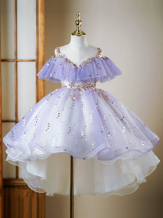 Lavender High-Low Puffy Tulle Sequin Flower Girl Dress