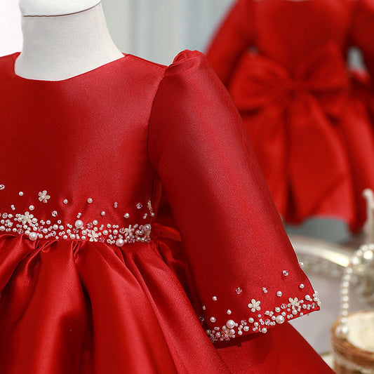 Red A-Line Princess Dress with Bow and Ruffle for Girls