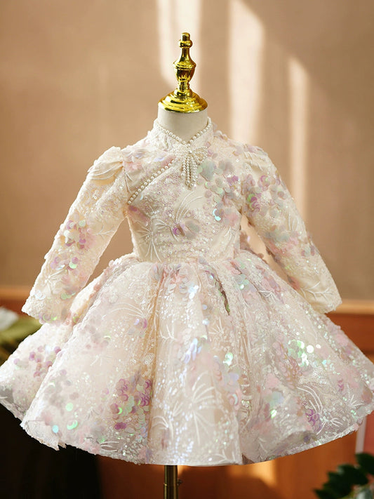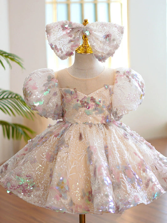 Princess Ball Gown Sequin Flower Girl Dress in Champagne