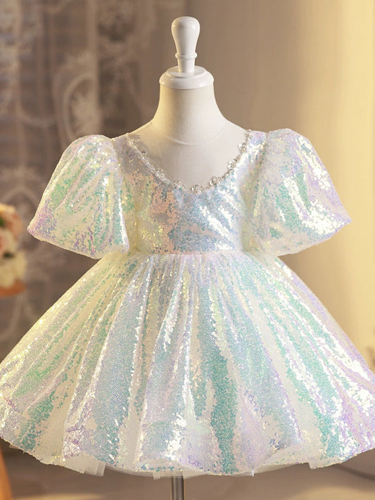 Gold Sequin Princess Puffy Ball Gown Dress for Kids